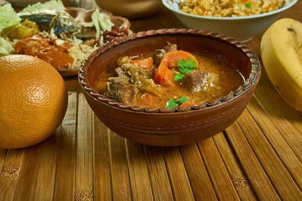Since it is a light and spicy soup, it is usually served in local bars and best enjoyed with cold drinks. The soup is made up of ingredients such as onions, chili, habanero pepper, ginger, garlic, tomatoes and other condiments.