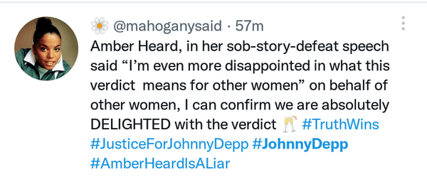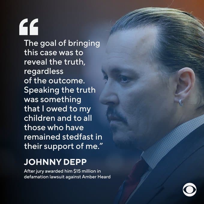 Johnny Depp's statement after the jury awarded him $15 million dollars in the defamation lawsuit against Amber Heard